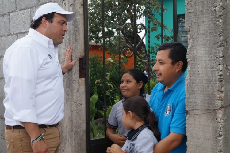 Cerca de las seis de la tarde del viernes, Carlos Morris visitaba los hogares de la Colonia El Mirador, en donde recibía los comentarios y necesidades de las familias pero nunca imaginó que lo recibieran cantando.