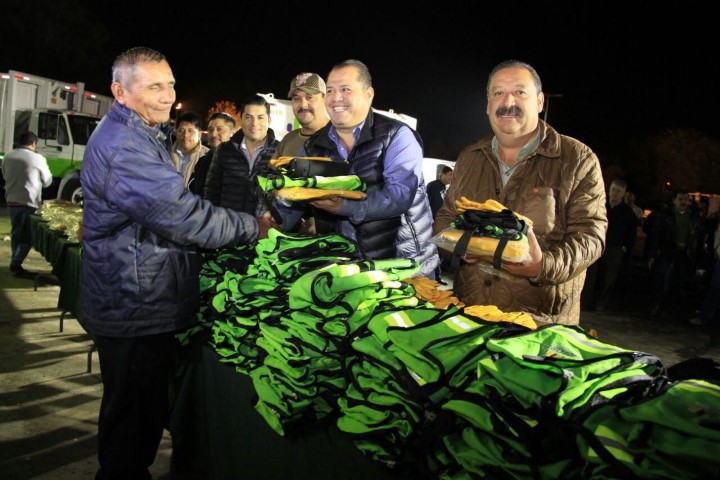 Ciudad Victoria, Tamaulipas.- Continúan los trabajos de modernización de la Dirección de Limpieza Pública Municipal, este jueves en punto de las 5:00 de la mañana el alcalde Óscar Almaraz Smer entrega equipamiento especializado a 264 elementos que han sido capacitados en los primeros días de este año para la operación de los 25 nuevos camiones compactadores que entrarán en marcha el día de mañana.