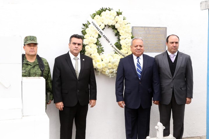 También realizaron guardias de honor, el representante del Alcalde Oscar Almaraz Smer, integrantes del cabildo y familiares del tamaulipeco Alberto Carrera Torres, frente a la placa, donde se recuerda su fusilamiento.