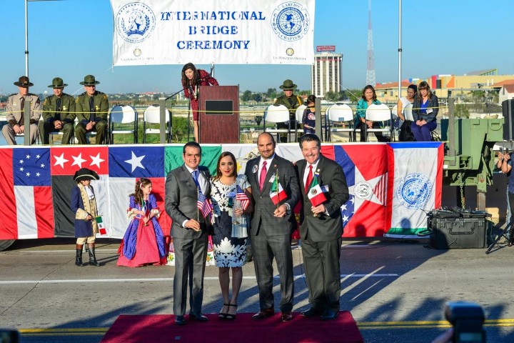 Minutos antes de las 8 de la mañana, en las inmediaciones del Puente Internacional Juárez-Lincoln, lado mexicano, se escucharon los acordes del toque de diana de la banda de guerra del Ejército Mexicano anunciando el inicio de la tradicional ceremonia entre autoridades de los dos Laredos, así como estatales y federales de México y Estados Unidos.