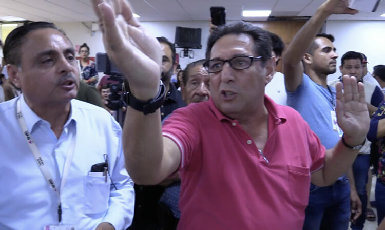 Es intento de tranquilizar quizás a las personas, había logrado que la gente se inquietara más, y entonces empezaron los gritos y las exigencias de quienes querían votar.