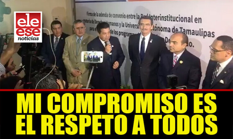 Ciudad Victoria, Tamaulipas.- El gobernador de Tamaulipas, Francisco García Cabeza de Vaca, refrendó el compromiso de su gobierno a la dignidad de las personas, en el marco de la firma de convenio para incorporar en la UAT, la maestría y el doctorado en Derechos Humanos.
