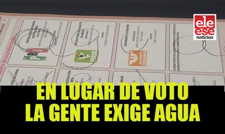 Ciudad Victoria, Tamaulipas.- A nuestra sala de redacción llegaron fotografías de boletas electorales del proceso electoral 2019 para elegir diputados, con la leyenda «agua» para ventilar de esta forma un reclamo generalizado por la falta del vital líquido en muchos municipios de Tamaulipas.