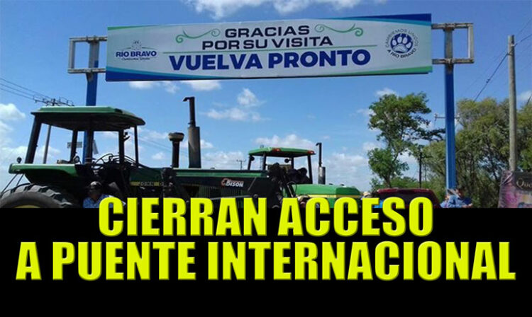 Río Bravo, Tamaulipas.-El acceso al puente internacional Las Flores, en Nuevo Progreso, quedó obstruido por campesinos de la zona que ubicaron tractores y camionetas en la vialidad que conduce a este cruce fronterizo.