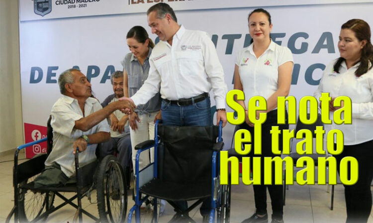 Ciudad Madero, Tamaulipas.-El alcalde del municipio de Madero, Tamaulipas, Adrián Oceguera acompañado por su esposa, la señora Cristina Organista de Oceguera, hizo entrega de aparatos funcionales a personas con problemas de discapacidad.