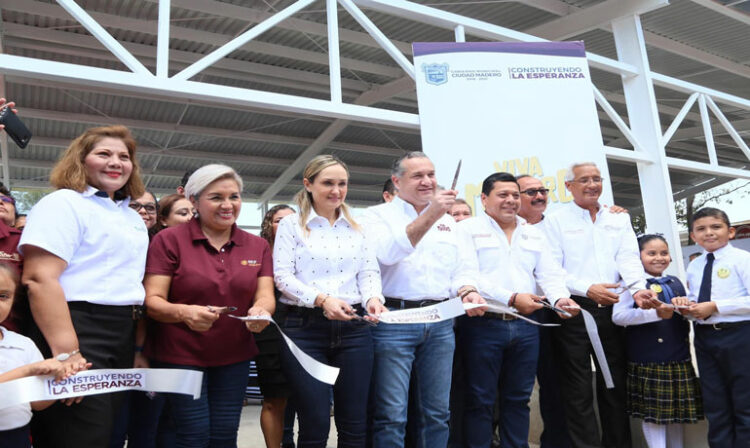 Madero, Tamaulipas.- El alcalde de Madero, Adrián Oseguera Kernion, inauguró este día junto a su esposa, la señora Ana Cristina de Oseguera, un techumbre en la escuela primaria Ford 139.