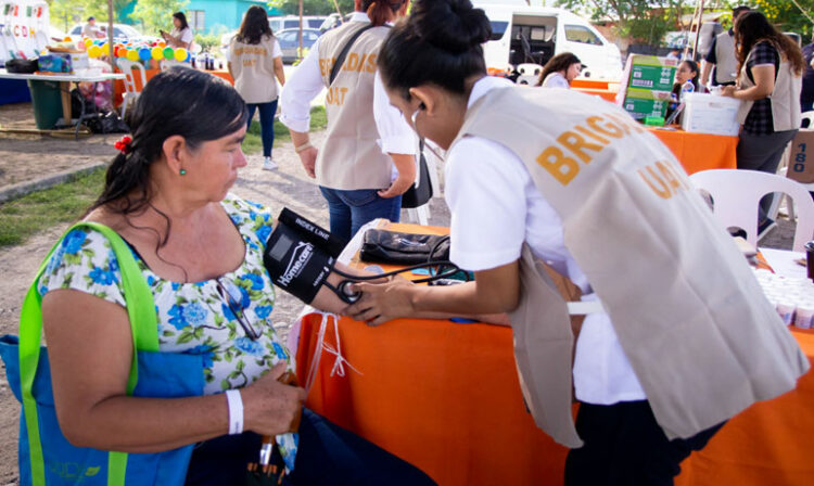 consulta médica y entrega de medicamento gratuito, toma de presión arterial,