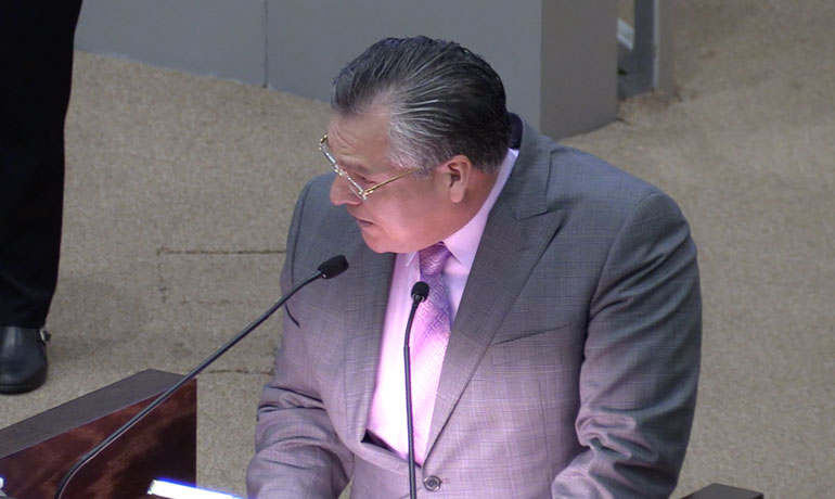 Ciudad Victoria, Tamaulipas.- El diputado del PAN Francisco Garza de Coss, ordenó apagar el micrófono al diputado de MORENA, Rigoberto Ramos Ordóñez, por exceder el tiempo establecido.