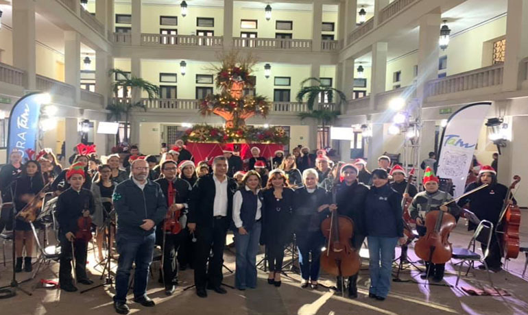 Ciudad Victoria, Tamaulipas.- La Orquesta Sinfónica de la Casa del Arte, ofreció anoche un concierto navideño en Palacio de Gobierno, dirigida por la maestra Sandra Luz Sánchez Segura.