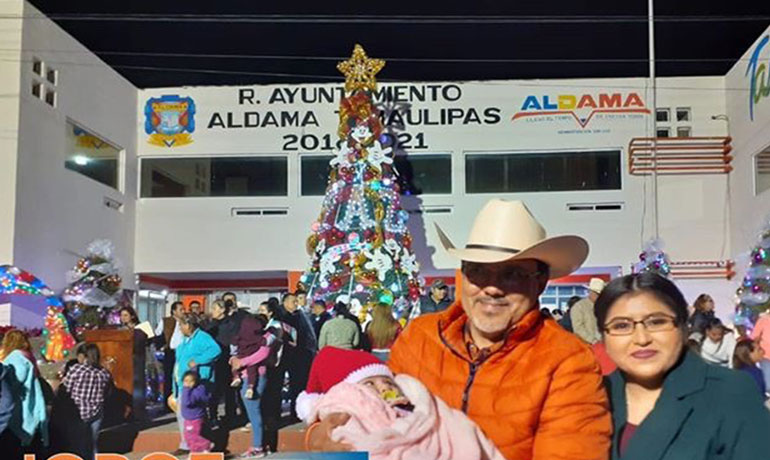 Aldama, Tamaulipas.- Los habitantes de Aldama, Tamaulipas, vivieron en su esplendor las fiestas decembrinas, que iniciaron con el encendido del pino navideño, como símbolo de la proximidad de la navidad.