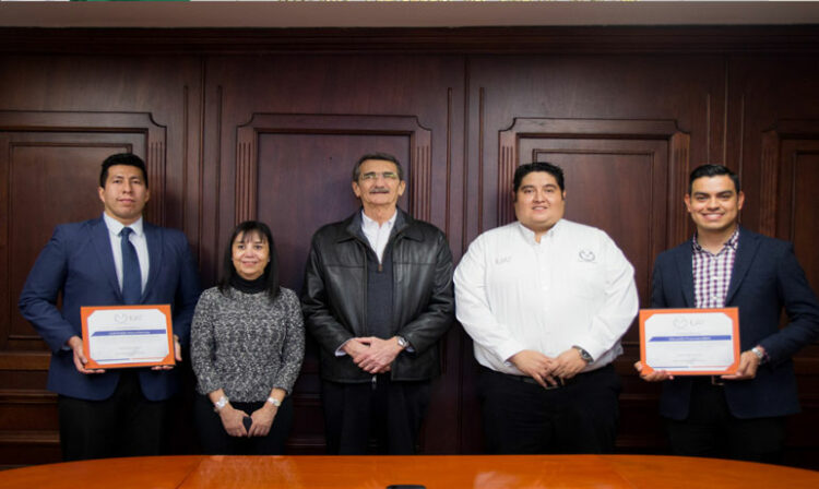 de BBVA, Mtro. Edgar Porras Quintanilla, a quienes hizo entrega de un reconocimiento