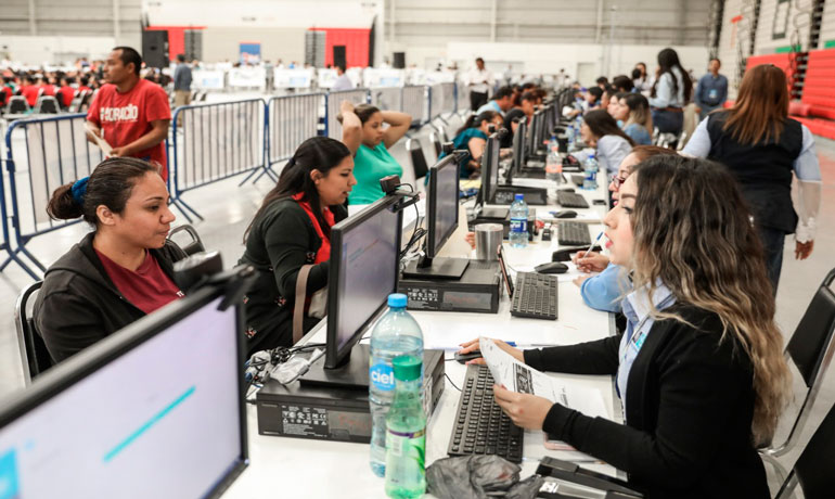 Reiteró que el personal municipal que se encuentra en Polyforum continuará miércoles, jueves y viernes distribuyendo los plásticos bancarios, por lo pronto, este martes toca su turno a universitario, posgrado, maestría o doctorado, así como de educación especial.