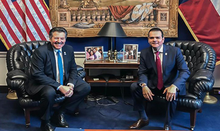 Al continuar este jueves su gira por la capital de Estados Unidos, Enrique Rivas y Pete Saenz atendieron en el Laredo Day a congresistas y autoridades de Texas.
