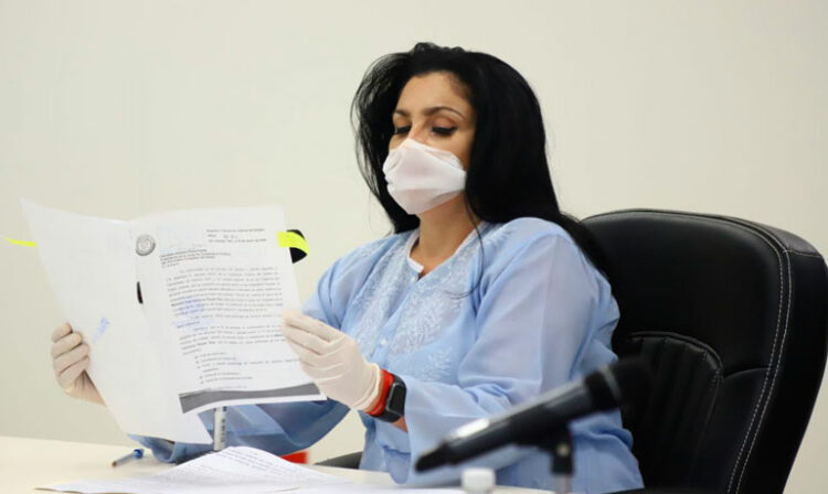 Ciudad Victoria, Tamaulipas.- Este día los diputados de Tamaulipas acudieron protegidos con guantes y cubrebocas, a la reunión de comisiones, para analizar y discutir la propuesta del nombramiento para el cargo de consejera del Consejo de la Judicatura del Poder Judicial del Estado.
