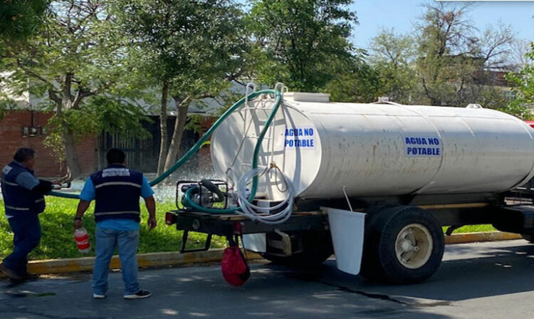 También se realiza el riego con agua tratada en áreas del Paseo Méndez, camellones centrales de bulevares como el Fidel Velázquez y la plaza del 22 Hidalgo, además de los espacios públicos, que permanecen cerrados al público, por la contingencia del Coronavir