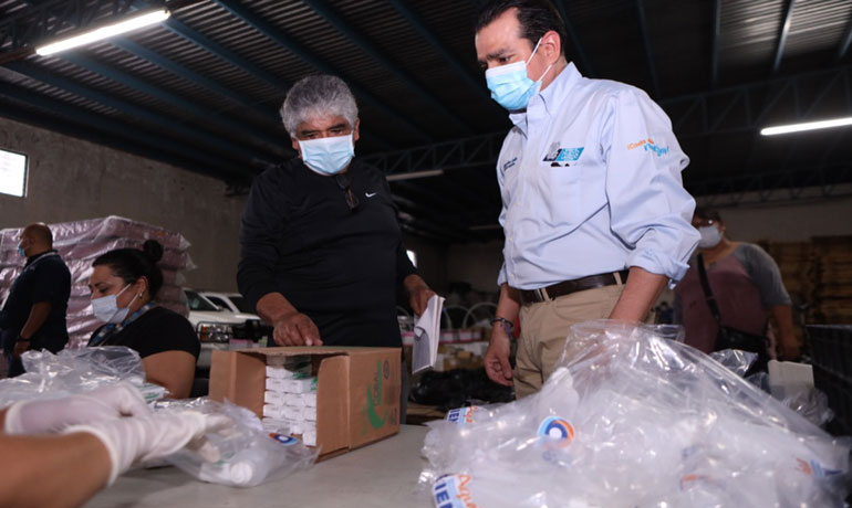 El presidente municipal Enrique Rivas, visitó el lugar donde se conforman los kits y destacó la labor de los trabajadores municipales, al poner todo su esfuerzo para combatir la pandemia del coronavirus.
