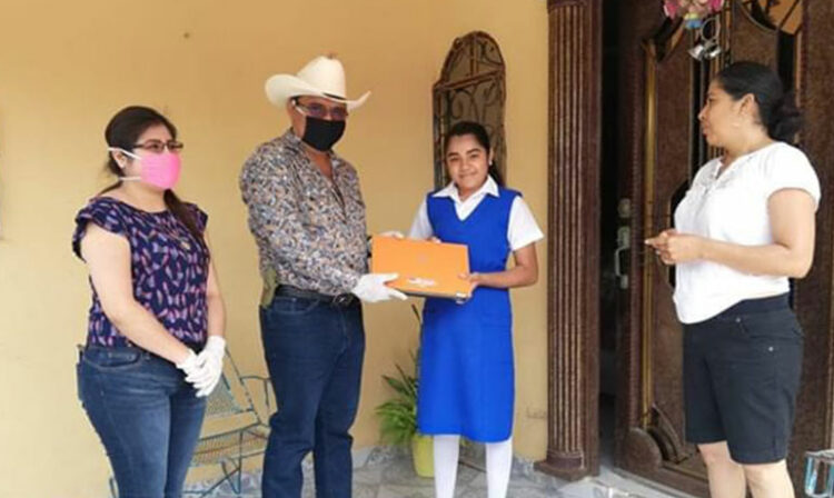 Además de proporcionarles alimentos en esta contingencia sanitaria, también les entregan computadoras lap top, que les permitirá mejorar su desarrollo escolar, desde sus casas.