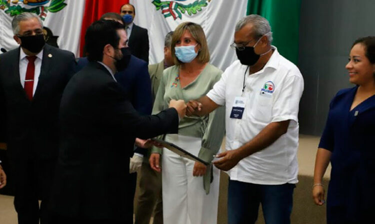 A propuesta del Grupo Parlamentario de Acción Nacional en el Congreso, se entregó un reconocimiento al Sr. Leonel González Torres, de oficio taxista y quien en forma gratuita y desinteresada, brinda servicio de transporte al personal médico del Hospital General Dr. Carlos Canseco, así como del IMSS e ISSSTE en el sur del Estado.
