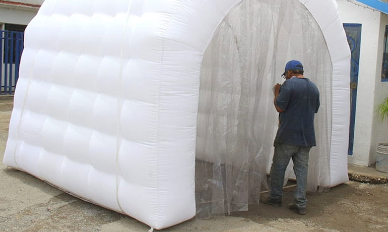 La estructura fue instalada en el acceso al Campamento, para que cuando el empleado ingrese sea rociado con la solución en su cuerpo para ser sanitizado y protegido; además, se mantienen las medidas básicas de higiene, como uso de gel antibacterial, la toma de la temperatura y el uso de cubrebocas y guantes para todos los empleados.
