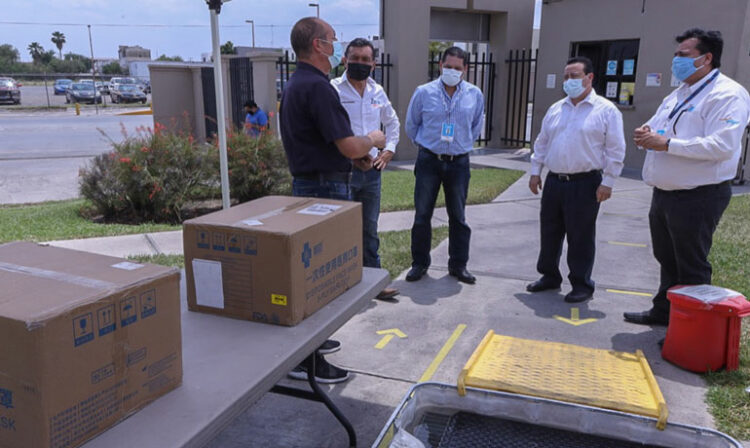 De manos del gerente de Recursos Humanos Guillermo Cano, el secretario de Desarrollo Económico Martín Reyes Madrigal y el director de Servicios de Salud Municipal Jaime Emilio Gutiérrez Serrano, recibieron el donativo en las instalaciones de la nave industrial.