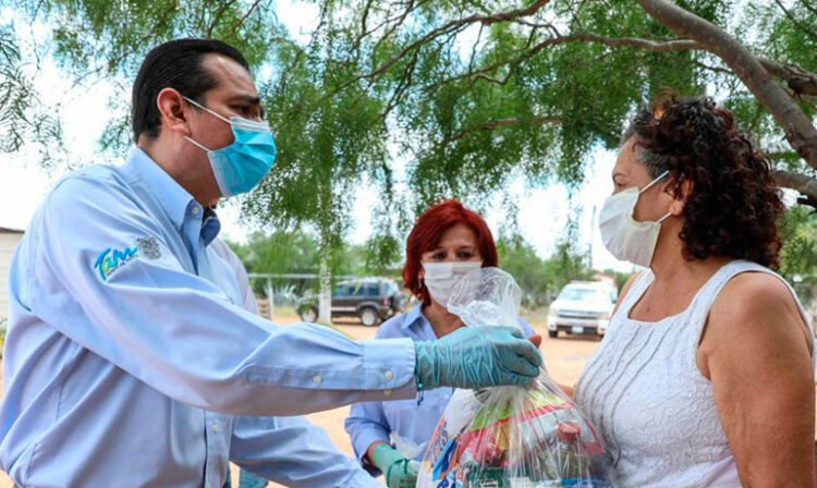 Nuevo Laredo, Tamaulipas.- En apoyo a las familias que requieren ayuda alimentaria por las dificultades económicas que ha generado el Covid-19, el presidente municipal Enrique Rivas junto al diputado local Félix García y la regidora Nora Hinojosa entregaron despensas y kits sanitizantes a los habitantes de la colonia Arlin, en el sur de la ciudad.