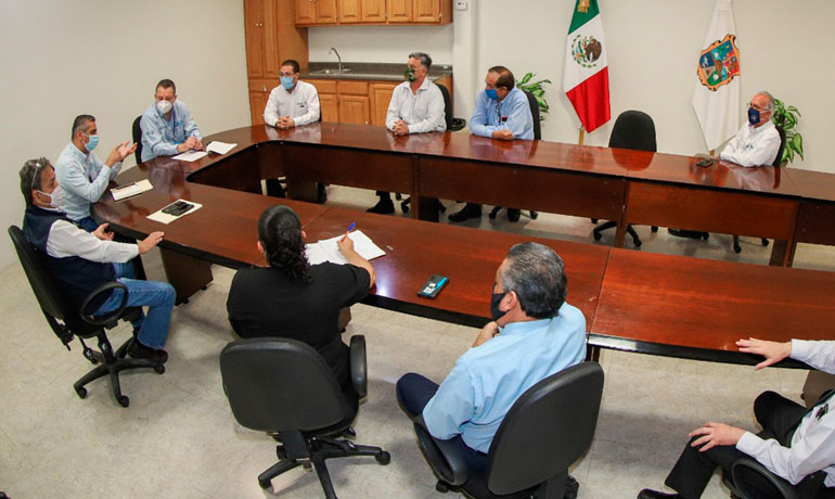 Nuevo Laredo, Tamaulipas.- El secretario de Ayuntamiento, Raúl Cárdenas Thomae, se reunió con el jefe de Jurisdicción Sanitaria 5, Óscar González Arrambide, personal de la Comisión Estatal para la Protección contra Riesgos Sanitarios (COEPRIS) y dueños de funerarias de la ciudad, para informarles de los lineamientos en el manejo y transporte de cadáveres con Covid-19.