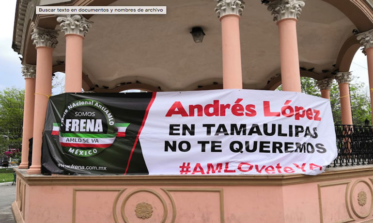 Al final de su recorrido, instalaron una manta en la plaza Hidalgo, con la leyenda: «Andrés López en Tamaulipas no te queremos»