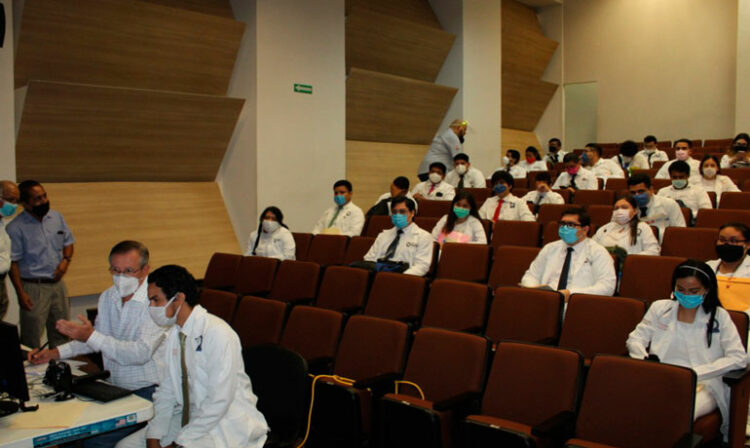 Por videoconferencia presidieron la apertura del acto las autoridades de salud y el Director del plantel, Dr. Enrique Álvarez Viaña, quien expresó su reconocimiento a los alumnos por llegar a esta importante etapa de su carrera.