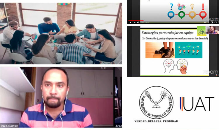 Como parte de las ponencias del Programa en Habilidades y Competencias para el Desarrollo Profesional, dirigido a estudiantes de la Universidad Autónoma de Tamaulipas (UAT), se impartió el taller en línea sobre Trabajo en Equipo.