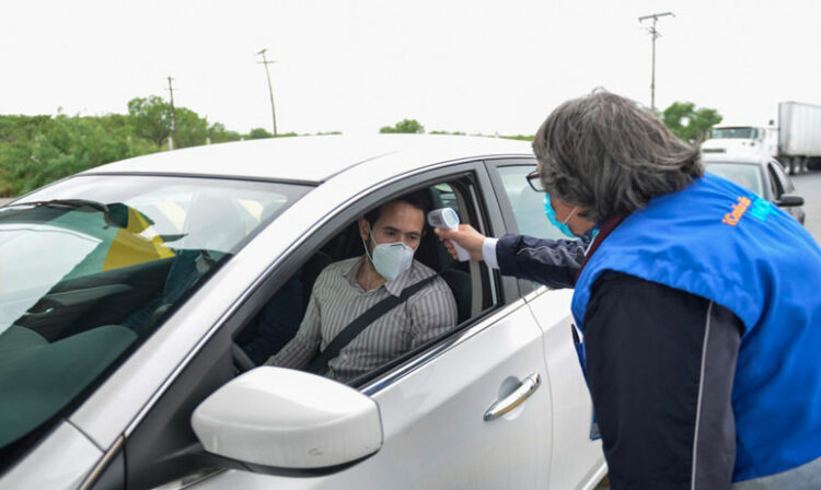 Nuevo Laredo, Tamaulipas.- Elementos de Protección Civil y Bomberos continúan con la revisión exhaustiva a viajeros que ingresan a Nuevo Laredo por el Kilómetro 26 de la Carretera Nacional, donde tienen instalado un filtro sanitario las 24 horas de día, para corroborar que los viajeros no presenten síntomas de Covid-19.