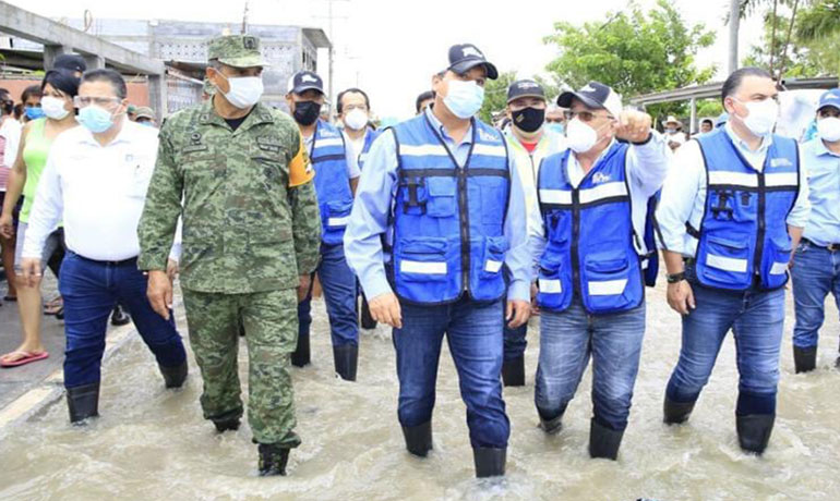 Acompañado de algunos diputados locales, García Cabeza de Vaca, recorrió algunas zonas dañadas por el paso del huracán «Hanna», que logró afectar viviendas debido a la intensidad de su fuerza, pero sobre todo por el cúmulo de agua.