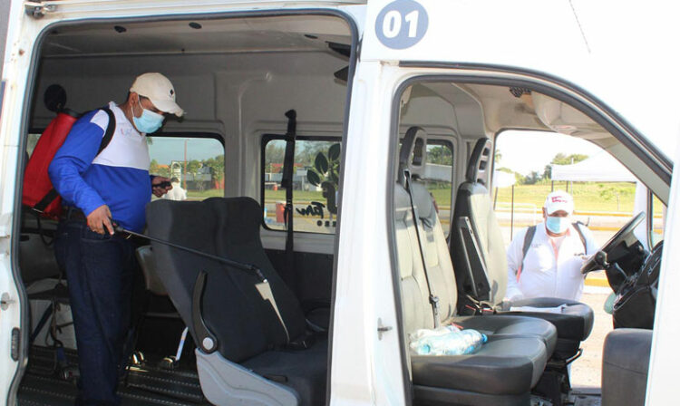 Cabe resaltar que el fin de semana pasado se desinfectaron aproximadamente 1300 unidades entre taxis y microbuses, mientras que en esta jornada se sanitizaron alrededor de mil vehículos.