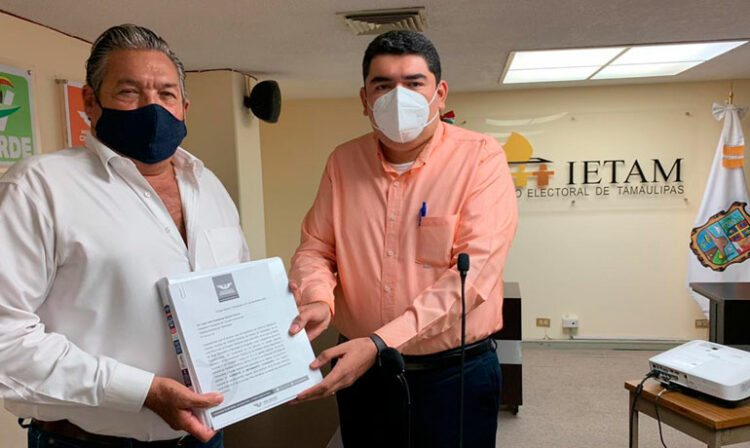 Gustavo Cárdenas Gutiérrez, Coordinador Estatal de MC acompañado por el secretario general de acuerdos Daniel González Tirado, y Luis Alberto Tovar Núñez, representante de MC ante el IETAM, además de secretarios y personal de la organización política, entregaron la documentación correspondiente cumpliendo los requisitos expedidos por el órgano electoral Tamaulipeco, en donde Movimiento Ciudadano busca participar en los comicios para renovar las 43 alcaldías y el congreso local.