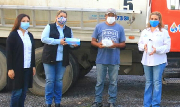 Ciudad Victoria, Tamaulipas.- La regidora Gladys Nery Enríquez Velázquez, entregó materiales de protección e higiene al personal operativo de distribución de agua potable en cisternas en la capital del estado.