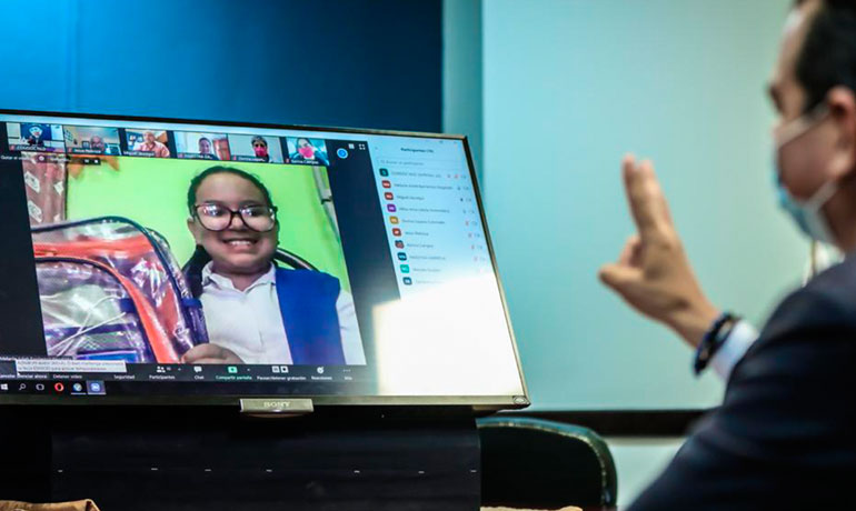 En reunión virtual por vía Zoom, el alcalde platicó con las y los directores de los planteles a quienes les dio a conocer los apoyos a los que fueron acreedores.