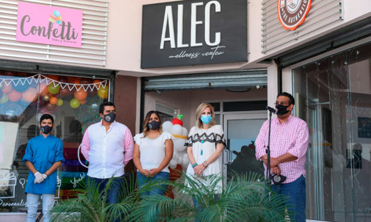 En representación del presidente municipal Enrique Rivas, la regidora Patricia Ferrara Theriot cortó el listón inaugural junto a los propietarios Mario Pool, Alfredo Camargo y Ángela Pool, cumpliendo las medidas sanitarias de la pandemia del Covid-19.