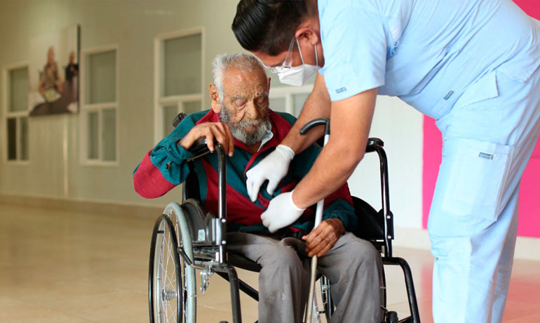 A través del programa de apoyo extraordinario en tu comunidad de Centros Asistenciales, ingresamos la Casa Hogar del Adulto Mayor a Don Máximo Reyes González de 102 años de edad, donde recibirá los cuidado integrales a cargo de personal de este centro. Don Max, vivía con su hija y su yerno que por las falta de recursos económicos no podían brindarle la atención necesaria, teniéndolo la mayor parte del tiempo postrado en cama, presentando algunos niveles de desnutrición
