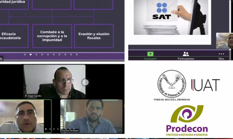 La Universidad Autónoma de Tamaulipas (UAT) a través de la Secretaria de Vinculación, en coordinación con la Procuraduría de la Defensa del Contribuyente (PRODECON) realizaron el Seminario en línea «Principales modificaciones fiscales que contiene el paquete económico 2021».