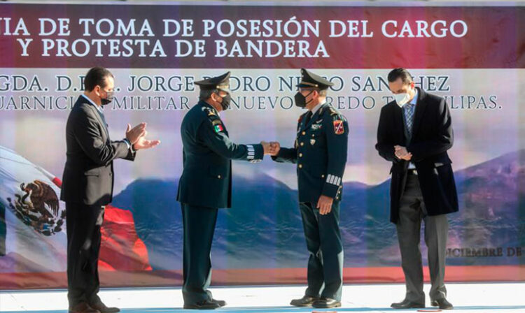 El presidente municipal Enrique Rivas Cuéllar asistió como invitado de honor a la toma de posesión y protesta de bandera del General de Brigada Diplomado de Estado Mayor, Jorge Pedro Nieto Sánchez, como nuevo Comandante de la Guarnición Militar de la Plaza de Nuevo Laredo.