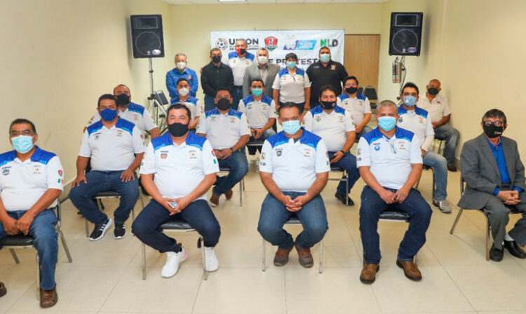 Nuevo Laredo, Tamaulipas.- La Unión de Ligas y Clubes de Fútbol de Nuevo Laredo tiene nueva mesa directiva, presidida por Maricela Escamilla González, a quien tomó protesta el regidor y presidente de la Comisión de Deportes, Juan José Zárate Quezada, en representación del alcalde Enrique Rivas.