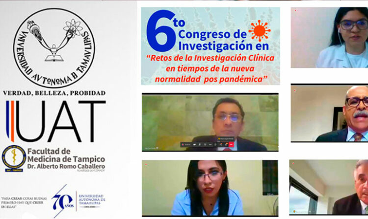 La Facultad de Medicina de Tampico “Dr. Alberto Romo Caballero” (FMT) de la Universidad Autónoma de Tamaulipas (UAT) llevó a cabo el “6to. Congreso de Investigación: Retos de la Investigación Clínica en tiempos de la nueva normalidad pos pandémica”, a través de plataformas digitales.