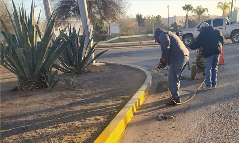 Los trabajos incluyen pintura amarilla en cordones, acotamientos y camellones, así como pintura blanca de división de carriles sobre la carpeta asfáltica en los tramos donde sea necesario.