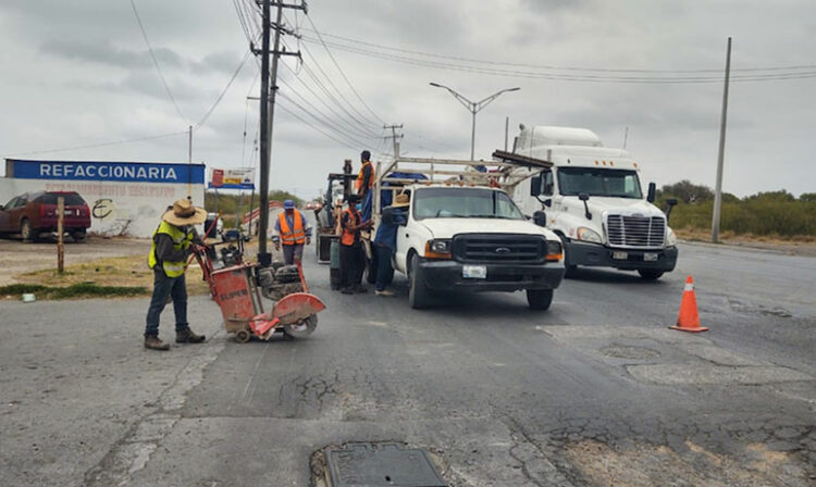 Nuevo Laredo, Tamaulipa.- La Secretaría de Servicios Públicos Primarios trabaja en el bacheo de la avenida Monterrey, entre Arriaga y Amealco, en la colonia Los Ciruelos.