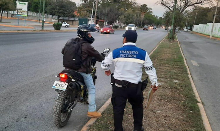 Ciudad Victoria, Tamaulipas (30 de enero de 2021).- La Dirección de Tránsito de Victoria inició en coordinación con la Policía Estatal un operativo denominado “Moto Segura”, en el que se orienta a los motociclistas en el uso correcto del casco protector y la prevención de accidentes.