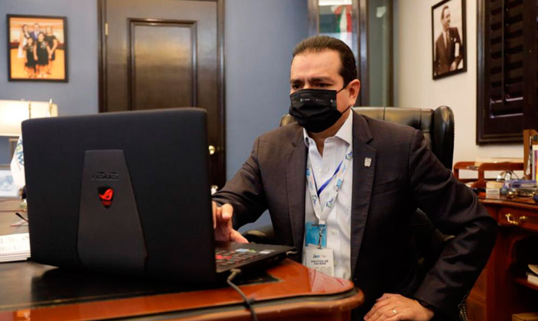 Nuevo Laredo, Tamaulipas.- En la Trigésima Sesión del ‘Diálogo Binacional Región Laredos 2021’, el Cónsul General de México en Laredo, Texas, Juan Carlos Mendoza, rindió su informe de actividades del 2020.