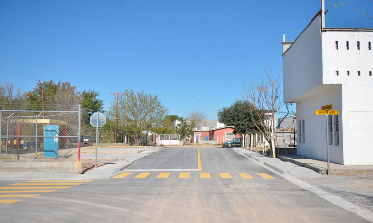 “Otra pavimentación es la Manuelita Valdez, que también lleva un gran avance del 98 por ciento, lo que queda pendiente es instalar las lámparas urbanas y pintura en las rampas”, señaló Ruiz Rendón.