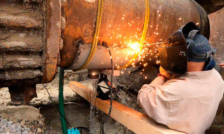 El trabajo consistió en soldar un tubo a media caña para reparar el orificio de 35 centímetros de diámetro y el reforzamiento de la tubería desgastada, que además de la fuga causó daños en una caja de válvulas, misma que será repara en los próximos días.