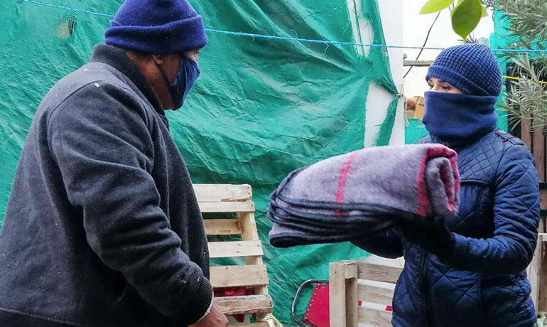 Nuevo Laredo, Tamaulipas.- La Dirección de Bienestar Social ha apoyado a más de 500 familias vulnerables a las bajas temperaturas y a personas indigentes, con cobijas para que se protejan del frío.