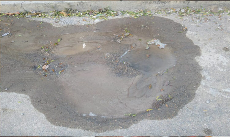 «Esa fuga inició hace 1 año, vinieron a repararla 2 veces desde entonces pero quien sabe como la reparen que vuelve a hacerse»