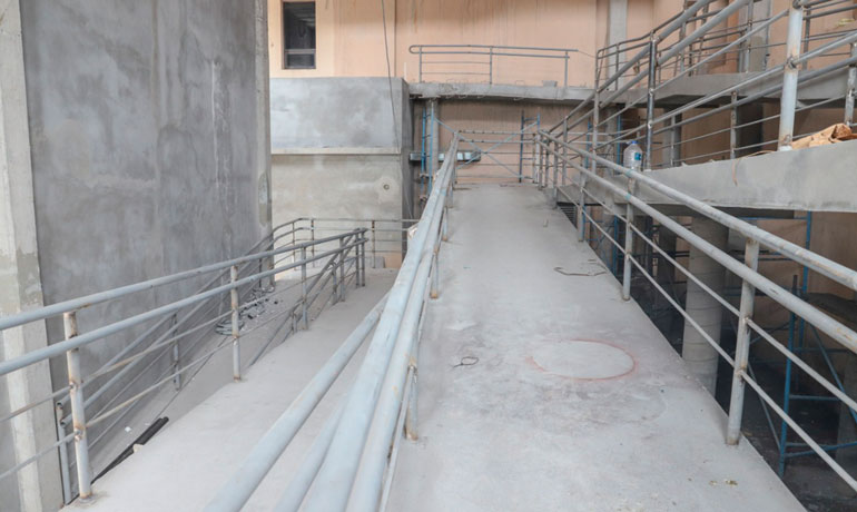 «Estamos fabricando portones y barandales, además ya están enjarrando los muros internos, se está impermeabilizando la azotea, y se están haciendo los barandales de la rampa», dijo Ruiz Rendón.